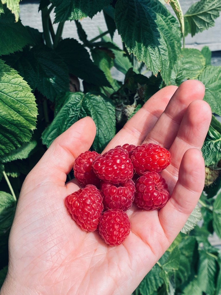 If you’ve been following along with this blog for a little while now, you probably know that we got our allotment just over a year ago. However, for years before that I’ve been growing what I can in our tiny London gardens in our various flats. One of the things I’ve managed to grow consistently over that time has been raspberries. Raspberries don’t need a lot of maintenance and once you get the hang of them they will keep going forever – the ones I have are from shoots that came off my grandmother’s raspberries that are decades old. The key with raspberries is that the fruit grows on older stems, meaning that the new stems we planted on our allotment are only starting to fruit this year. Once the older stems have finished fruiting, you cut them to the ground and leave the new growth to overwinter and fruit the following year. It’s a lovely cycle of growth, ageing, death and rebirth. Most of our raspberries are planted on our allotment, but we have one in the garden that has been growing now for a few years, and this year has fruited really strongly and much earlier than the ones on the plot.