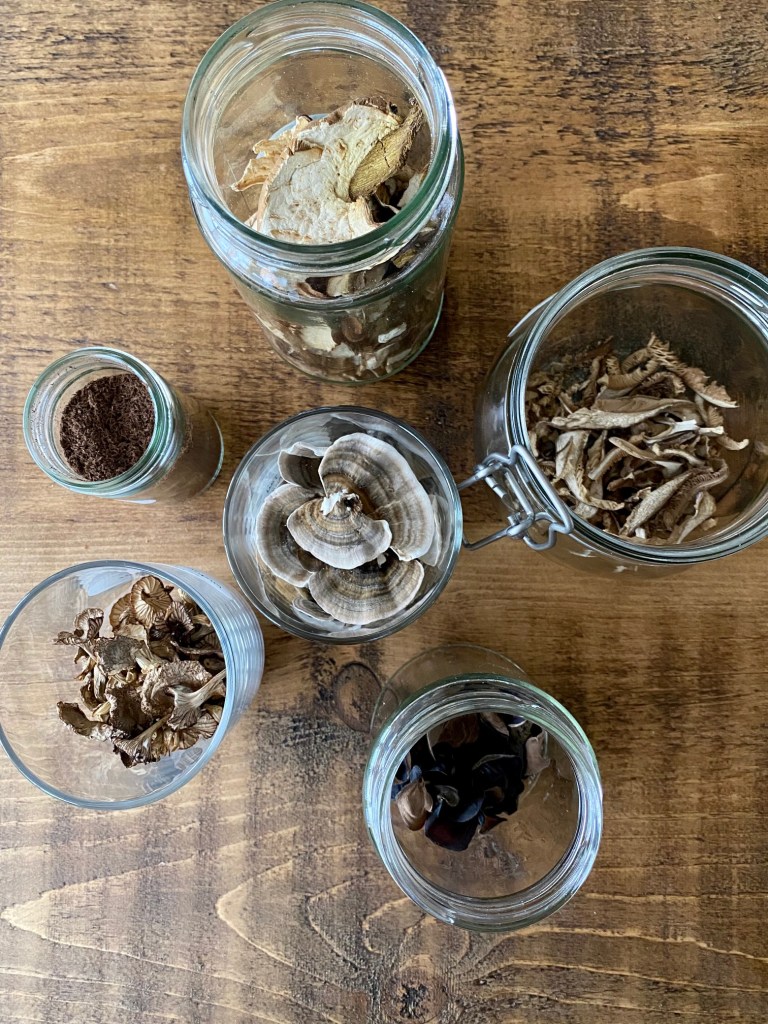 - Handful dried hard mushrooms (e.g. turkey tails, artists bracket etc)